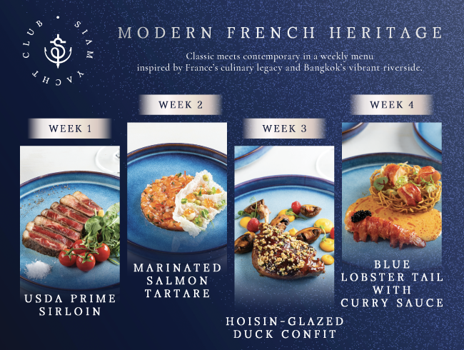 This rotating weekly menu celebrates refined flavors, premium ingredients, and sophisticated craftsmanship thoughtfully paired with curated music and an exclusive riverside ambiance.